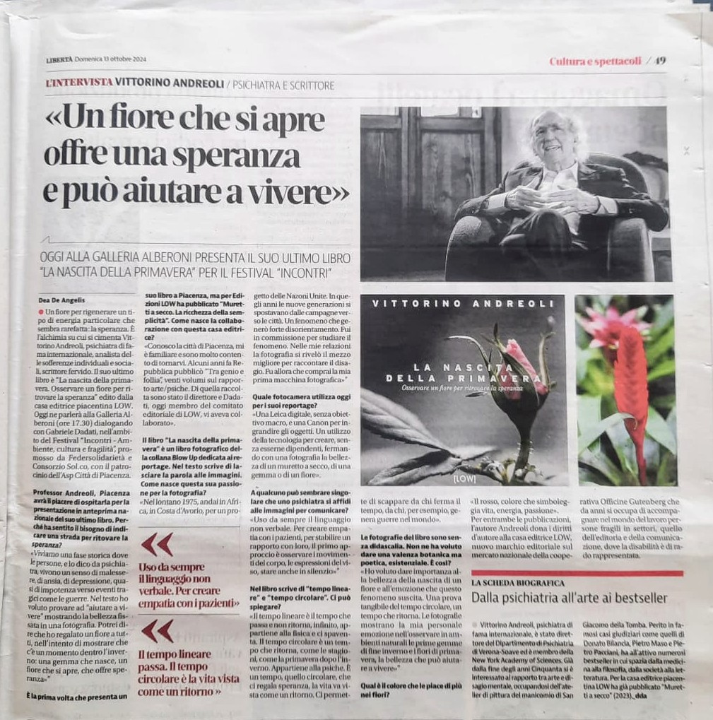 Appassionato fotografo, Vittorino Andreoli si impegna da anni a catturare immagini che testimoniano il ritorno della primavera. Ce le affida insieme a una profonda meditazione sul tempo, per mostrarci che dove tutto sembra spento torna il miracolo della vita, portando con sé la speranza.